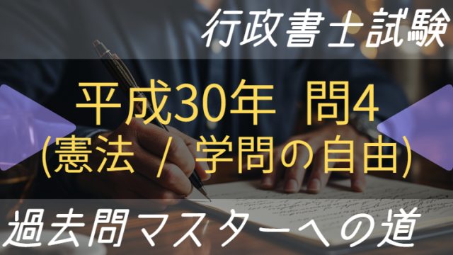 平成30年 行政書士試験の過去問:平成30年/問4 解説 | 過去問マスターへの道 papao 成り上がリーガル 学問の自由に関する次の記述のうち、妥当でないものはどれか。 1 学問研究を使命とする人や施設による研究は、真理探究のためのものである …